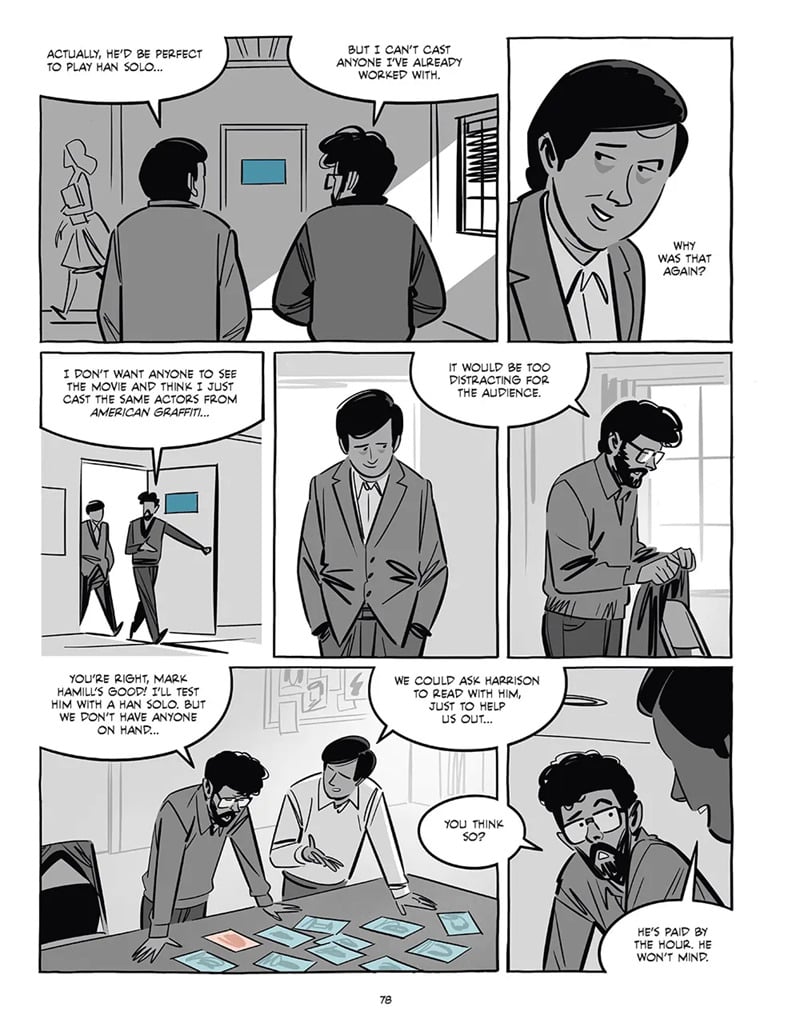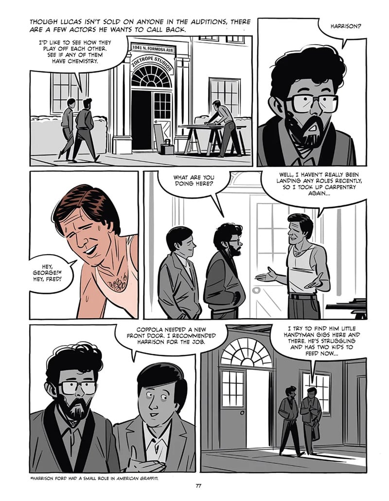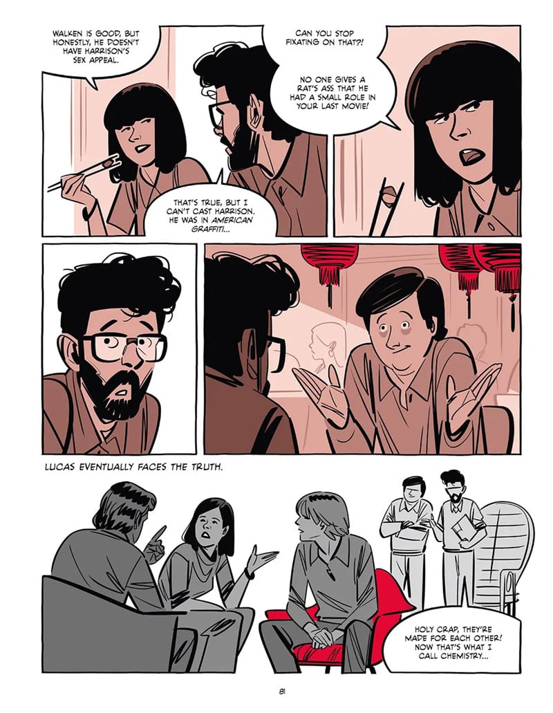 - A narrativa cobre um período longo: desde um acidente de carro que Lucas sofreu, passando pelos seus anos em escola de cinema, até os altos e baixos com a 20th Century Fox. Ou seja: os momentos antes da explosão do sucesso, que nem sempre são glamourosos.